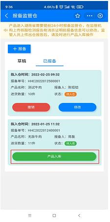 第五步:报备后是“待入仓”的状态,此时可以对报备记录进行撤销和修改的操作。